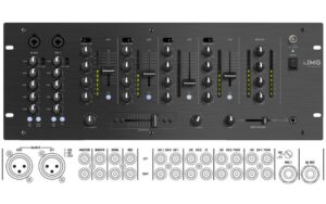 6 Eingangskanäle (4 Stereowege, 2 Mikrofone anschließbar). Stereo-Eingangskanäle umschaltbar 2 x Phono/Line und 2 x Line/Line. Crossfader kann jedem beliebigen Eingang zugeordnet werden. 3 getrennt regelbare Stereo-Ausgänge (Master/Booth/Zone).